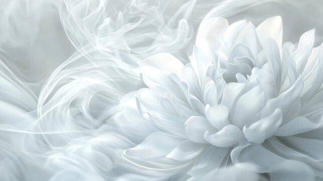 Realistic 3D flower background with wisps of steam, emphasizing the texture and depth of the floral elements. No logos or people present.