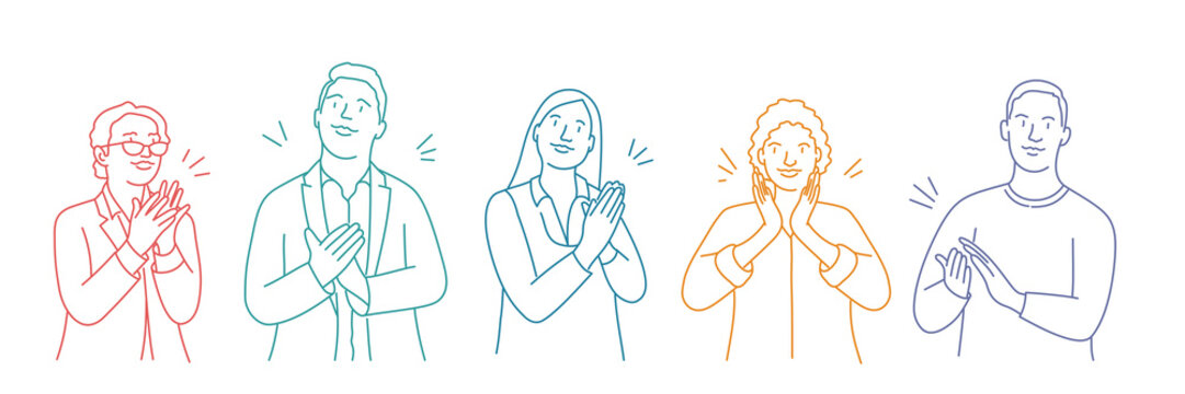 Illustration image capturing the moment of employee recognition with colleagues applauding and celebrating, Focus on the joy and appreciation in their expressions, Business team clapping together