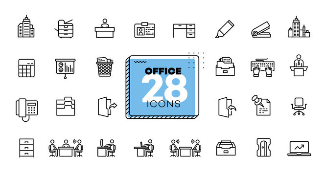 Office icons set. Line, flat, vector icons for mobile applications, buttons and website design. Illustration isolated on white background. Collection modern logo, app, infographic with EPS 10 format