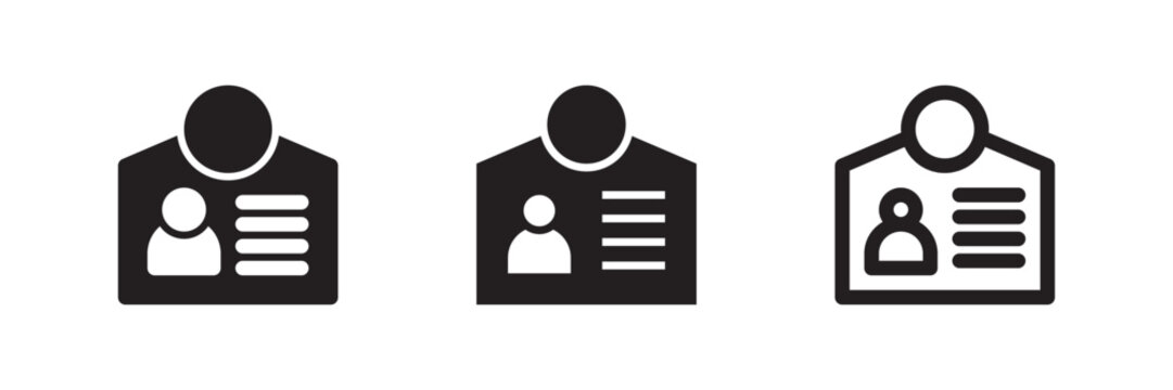 ID card icon set for user profile, staff verification, secure access, and employee identity tracking
