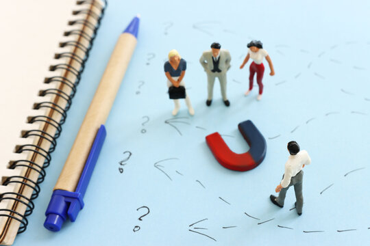 Concept image of a magnet attracting a group of people. metaphor of media influence and human resources