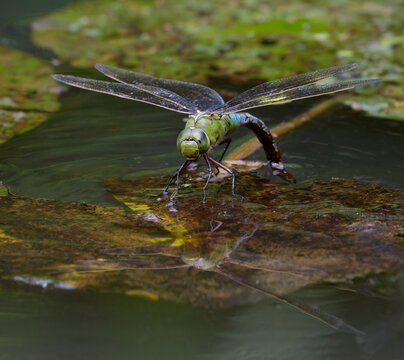 Revived statue of a Roman emperor with an ice cream cone at the garden fountain