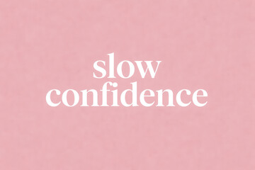modern typography illustration featuring the phrase “slow confidence” centered on a gentle pink gradient background. Warm/empowering motivational quote with smooth color transitions/strong readability