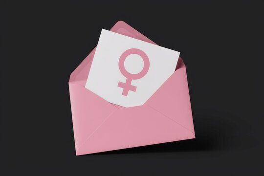 Pink envelope with a female symbol inside  representing women's empowerment and communication.