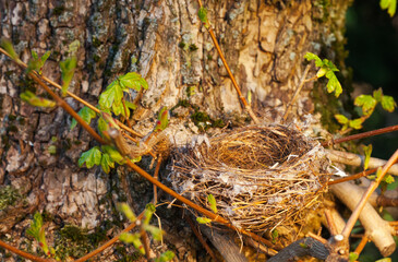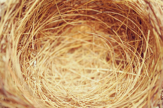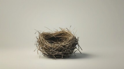 Empty nest on a plain background, symbolizing new beginnings and departures.