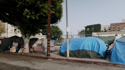 LA Skid Row Tents Along Inner City Sidewalk 4K