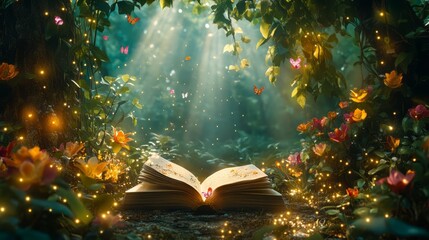 Magical fantasy fairy tale scenery night in a forest
