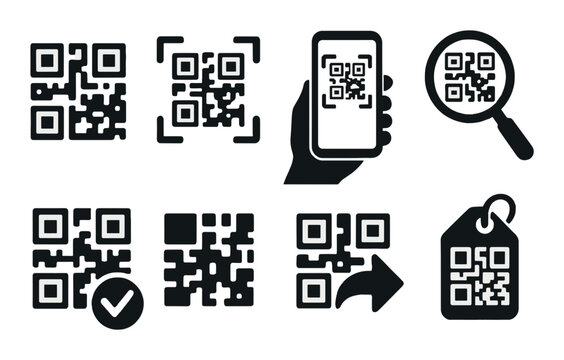 Qr code silhouette icons set – simple, barcode and scanner graphics