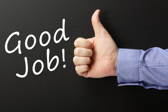 Hand writing text caption inspiration showing Great Job. Business concept for Success Appreciation written on sticky note paper on the wooden wood background.