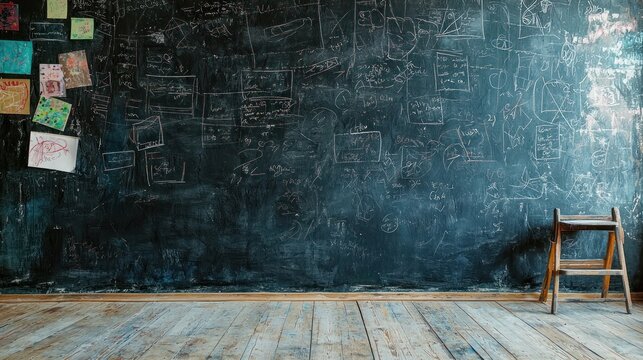 An artistic depiction of a bedroom wall covered in chalkboard paint, encouraging creativity and expression