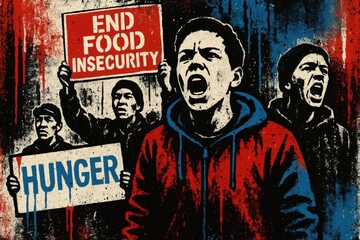 End food insecurity graffiti protest. Use for activism, hunger awareness, political campaigns, and social justice movements.