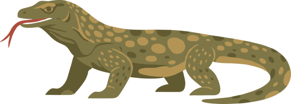 Simple Flat Illustration of Komodo Dragon Full Body with Visible Tongue