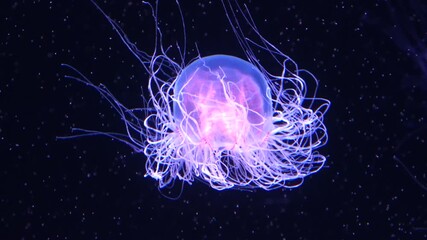 Closeup shot of Spirocodon Saltator, the endemic jellyfish of Japan floating underwater. 4K