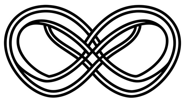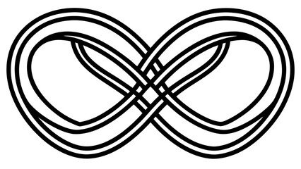 Vector art of a stylized infinity symbol, rendered with thick, overlapping lines, creating a sense of endlessness and eternity, isolated on a clean