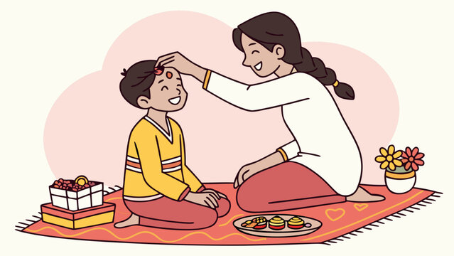 Sister lovingly applies tika to her brother's forehead during Bhai Tika festival, a cherished celebration of siblinghood, family bonds, and enduring traditions