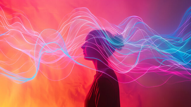 The colorful aura around the head of a beautiful europian woman who is cheerful, lively, optimistic, lives healthily, and only eats plant-based foods