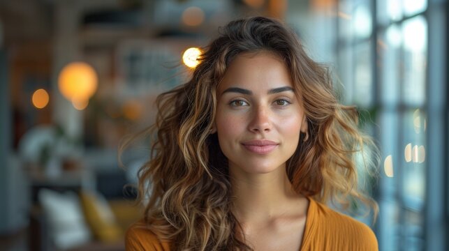 business presentation, enthusiastic latina executive giving a presentation in a modern office with vibrant lighting and cityscape backdrop, using animated gestures