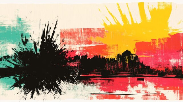 Vibrant abstract cityscape painting. Bold colors and brushstrokes create a dynamic and energetic mood.