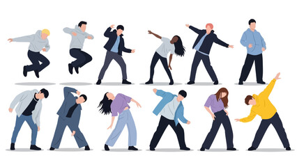 Dancing people silhouettes, dance poses vector, energetic movement illustration, happy dancers group, party celebration clipart, performing arts shadow, lifestyle fun motion,