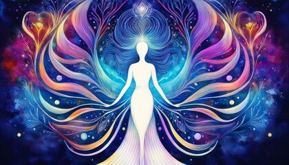 human and love spirit powerful energy connect to the universe power abstract art watercolor painting illustration design hand drawn