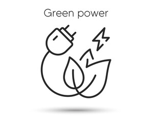 Green eco power plug line icon. Energy efficient plug and leaf sign. Renewable, eco friendly energy symbol. Illustration for web and mobile app. Line style green energy icon. Electric power. Vector