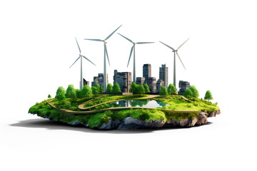 An aerial view of a biogas facility with solar panels and wind turbines nearby, emphasizing sustainable energy production.