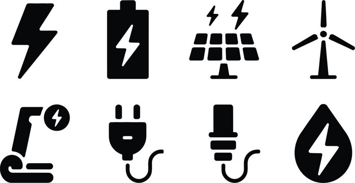 Set of green energy thin line icons. Icons for renewable energy, green technology. Design elements for you projects. Vector illustration