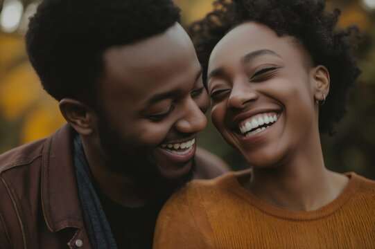 Young loving couple sharing a joyful moment, laughing and enjoying each other's company in a park