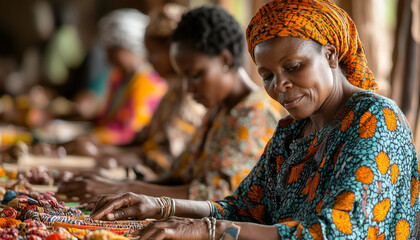 Community workshop with individuals from various cultures engaged in creative arts and crafts