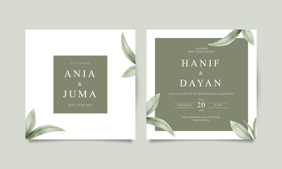wedding invitation set with floral branches watercolor