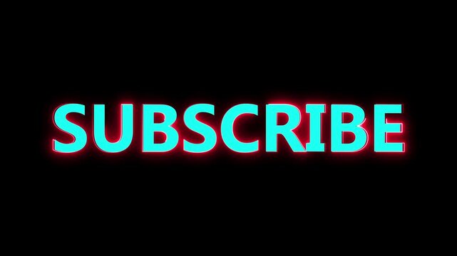 Animated neon subscribe text appears on black background, dynamic motion graphics