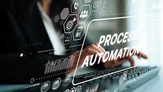 Business Professional Engaging in Process Automation with Digital Interface and Data Graphics. Asymptotic smart data analytic.