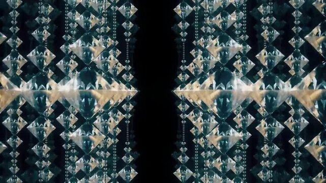 A detailed video featuring an intricate diamond pattern with reflective surfaces, creating a complex and visually engaging design. The arrangement captures elegance and sophistication.
