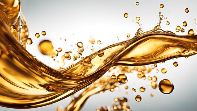Olive or engine oil splash, Golden Cosmetic Liquid isolated on white background.