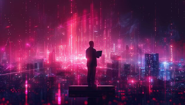 manager deeply examines system logs on large computer screen. Meticulously analyzes system performance data. Image shows detailed monitoring of network activity. Tech expert checks for issues.