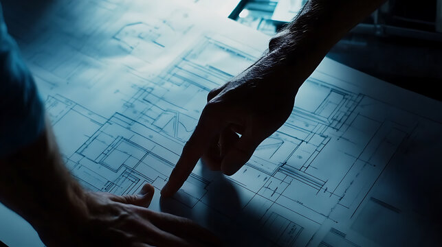 Engineer reviewing a blueprint for lithium refining equipment installation. Featuring blueprint review