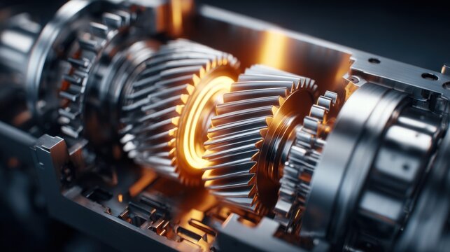Intricate mechanical gears in close-up, showcasing precision engineering and internal design.