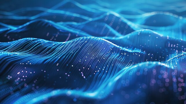 Blue abstract technology data wavy lines in holographic style