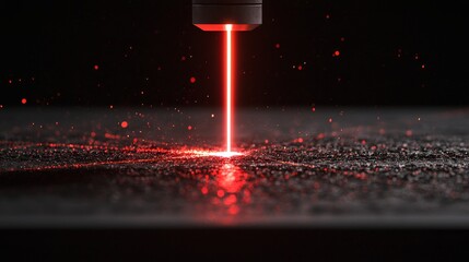 Laser cutting. Metal machining with sparks on CNC laser engraving maching Generative AI