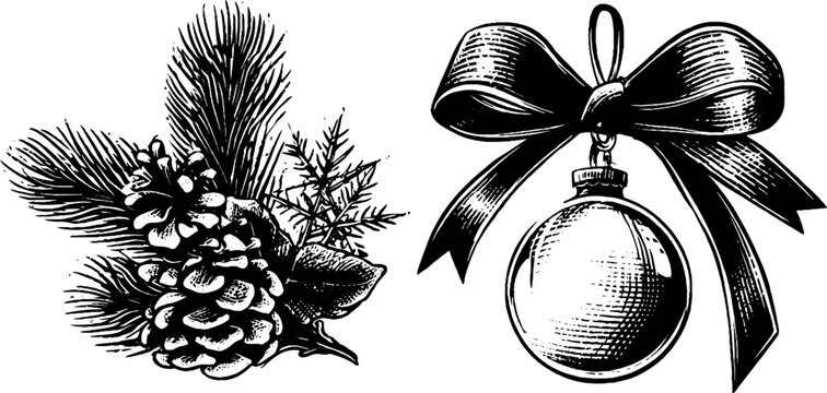 Vintage fir branch garland and ornament design for holiday decorations