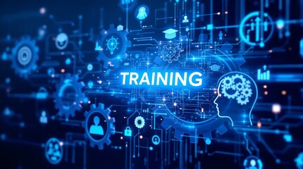 Explore the transformative power of training and professional development through e-learning, featuring interactive digital elements and a laptop in focus. Tessel