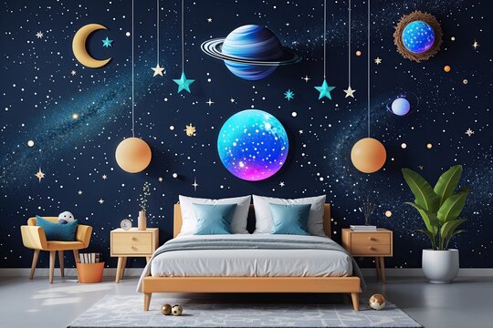 Playful Flat Design Featuring Enigmatic Celestial Elements for Stunning Wallpaper and Backgrounds