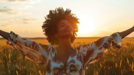 Woman embracing summer for august bank holiday outdoors