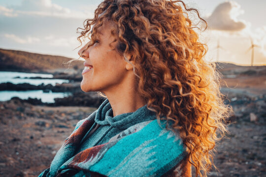 Smiling woman enjoying coffee promoting cozy cafe atmosphere