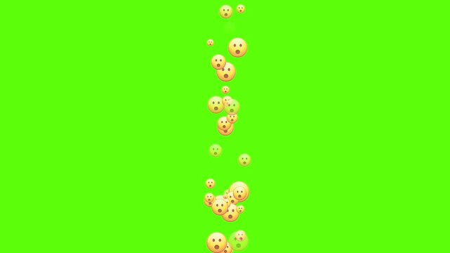 Wow button, react emotion animated on green screen when streaming, A steady rising stream of wow reaction emojis on Social media platforms .surprise Facebook live style animation.