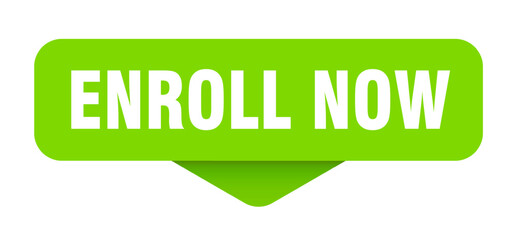 Enroll now sign. Enroll now banner, sticker, label or tag. Enroll now ribbon template. Enroll now speech bubble. Vector