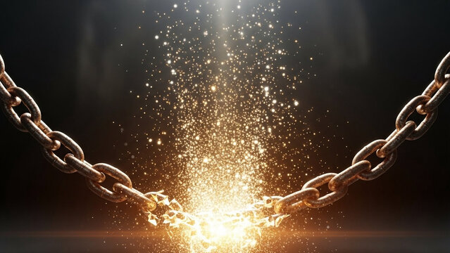 Chains binding hands each link engraved with different vices illustrating the enslavement by ones sins