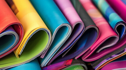 Stack of colorful magazines on vibrant orange background