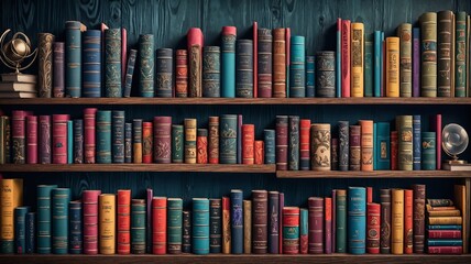 Bookshelf with Colorful Books