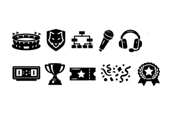 Sports, entertainment solid icon set. Venue, trophy, microphone icons solid collection